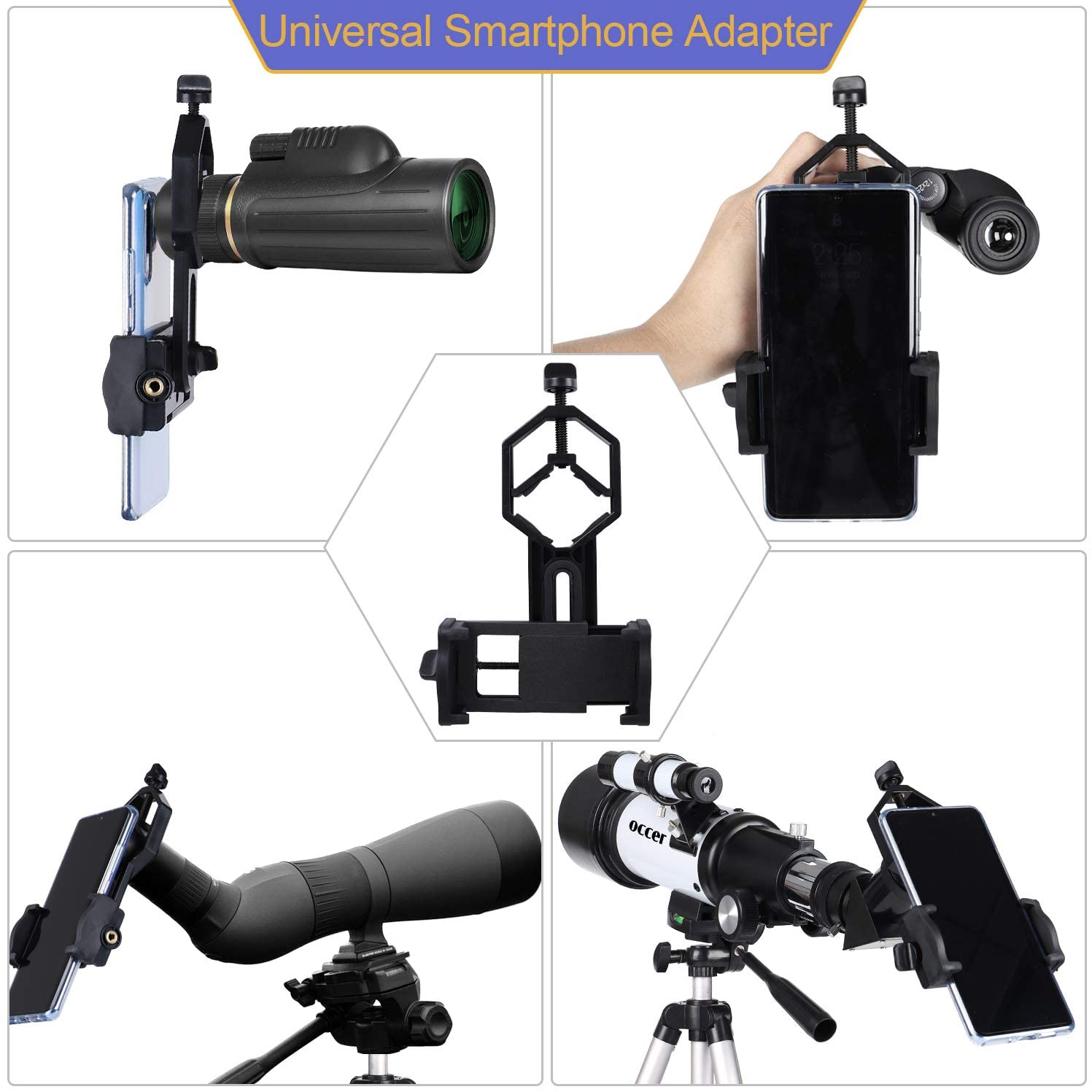 【✔ UNIVERSAL SMARTPHONE ADAPTER】This travel telescope also with an universal phone adapter is really convenient,which can attach your phone,then you can take photos or videos.In addition,it also works on binoculars,monocular,spotting scope,and so on.What a powerful tool!