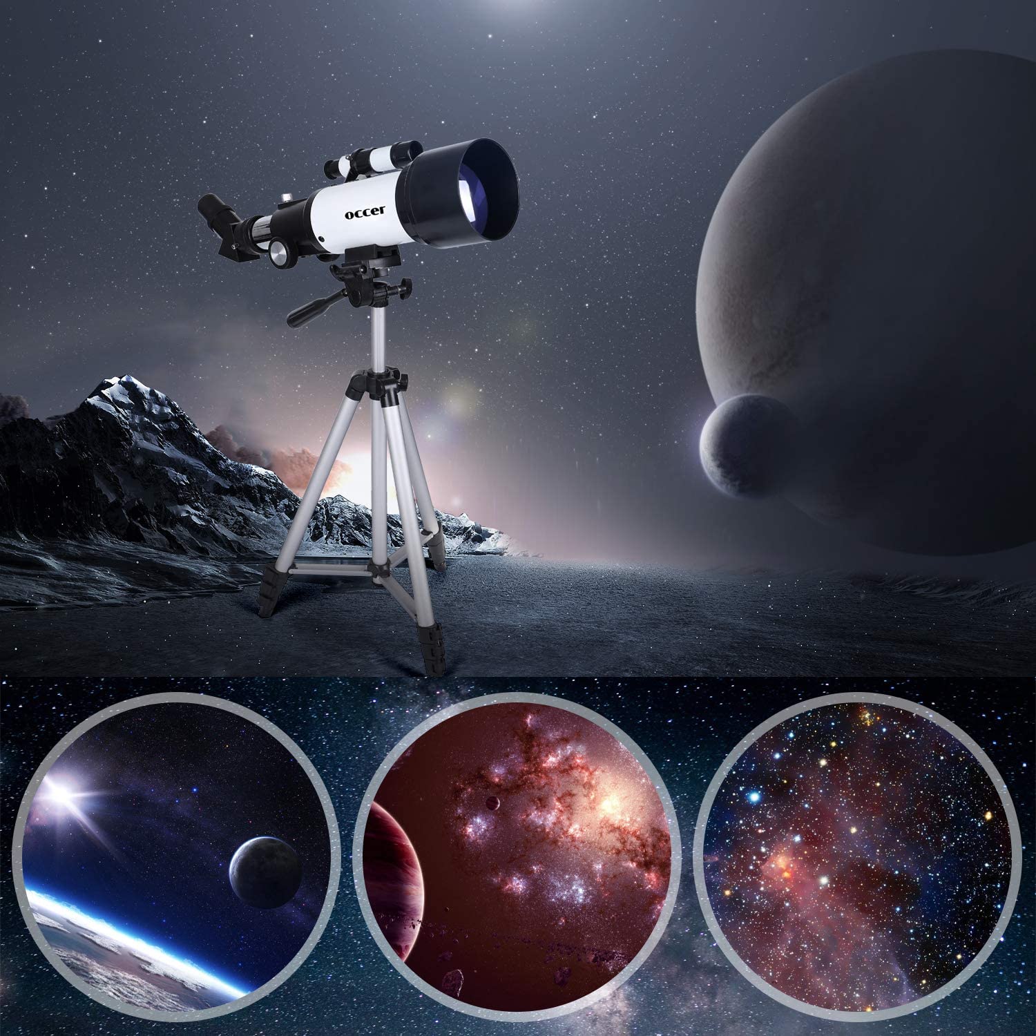 【 ✔ FULLY MULTI-COATED LENS COATING-WITH BRIGHT IMAGES】Occer telescope with 400mm focal length and 70mm aperture was adopted high resolution fully multi-coated lens coating and Owning excellent transmittance that can get a crystal clear viewing,even can make object easier to get into the field of view.What is more,these telescopes for astronomy beginners comes with a finderscope that can help you target the object quickly,then you can use the telescope to observed.